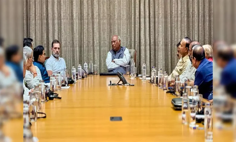 राज्य कांग्रेस प्रभारी हरीश चौधरी, राज्य कांग्रेस अध्यक्ष जीतू पटवारी, विधानसभा में विपक्ष के नेता उमंग सिंघर, तेलंगाना प्रभारी मीनाक्षी नटराजन और अन्य नेता बैठक में उपस्थित थे।
