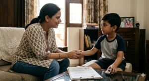 “सोफे पर जूते पहनकर मत चढ़ो” की जगह कहें – “बेटा, सोफे पर बैठने से पहले जूते उतार दो।” सकारात्मक भाषा बच्चे के दिमाग पर कम दबाव डालती है।