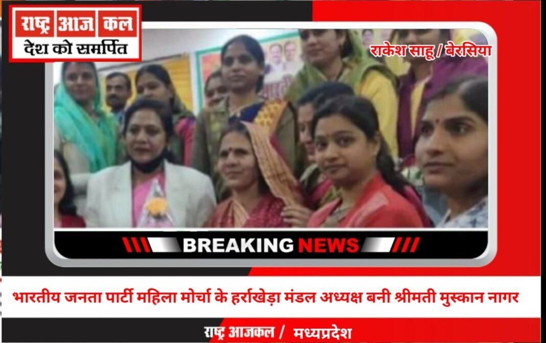 राष्ट्र आजकल / राकेश साहू / बैरसिया / भारतीय जनता पार्टी प्रदेश अध्यक्ष विष्णु दत्त शर्मा के निर्देशानुसार एवं महिला मोर्चा की प्रदेश अध्यक्ष श्रीमती माया नरोलिया की सहमति से एवं माननीय सांसद सुश्री साध्वी प्रज्ञा सिंह ठाकुर , हुजूर विधायक माननीय श्री रामेश्वर शर्मा, माननीय श्री विष्णु खत्री विधायक बैरसिया भाजपा भोपाल ग्रामीण अध्यक्ष माननीय श्री केदार सिंह मंडलोई की अनुशंसा से भारतीय जनता पार्टी श्रीमती नम्रता शर्मा भारतीय जनता पार्टी जिला अध्यक्ष के द्वारा जिला भोपाल ग्रामीण के महिला मोर्चा मंडल अध्यक्षों की घोषणा हुई जिसमें सर्वसम्मति से भारतीय जनता पार्टी महिला मोर्चा भोपाल ग्रामीण से संगठन में सक्रियता को देखते हुए श्रीमती मुस्कान मनोहर नागर को भारतीय जनता पार्टी भोपाल ग्रामीण महिला मोर्चा मैं हर्राखेड़ा मंडल अध्यक्ष नियुक्त किया गया एवं सभी ने शुभकामनाएं प्रेषित की श्रीमती मुस्कान मनोहर नागर को सम्मानित किया सभी कार्यकर्ताओं में खुशी की लहर देखने को मिली एवं सभी महिला मंडल ने शुभकामनाएं एवं शुभाशीष प्रदान किया