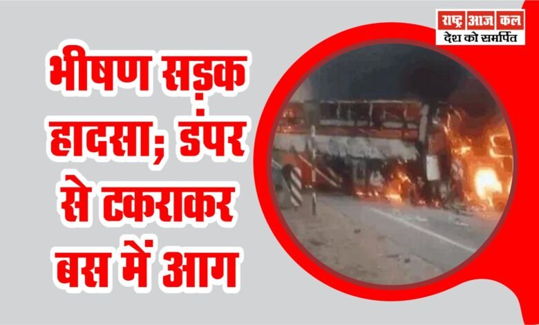 भीषण सड़क हादसा; डंपर से टकराकर बस में आग, 13 जिंदा जले:22 घायल