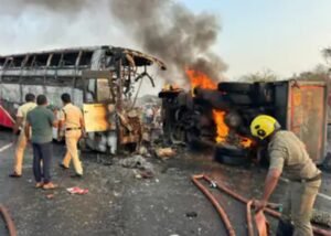 अधिकारियों ने बताया कि हरिकृष्णा ट्रैवल्स की बस तेलंगाना के निर्मल से नेल्लोर जा रही थी। हादसा सुबह 6:00 बजे के करीब हुआ। आग पर करीब तीन घंटे में काबू पाया गया।