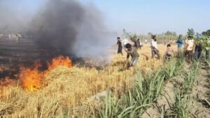 बिजली लाइन से निकली चिंगारी से 20 बीघा से अधिक की गेहूं फ़सल जल कर राख