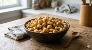 मखाना केवल उपवास का खाना नहीं, बल्कि फिटनेस प्रेमियों का पसंदीदा स्नैक है। एक पैन में आधा चम्मच घी डालकर मखानों को कुरकुरा होने तक भूनें। ऊपर से हल्का काला नमक, काली मिर्च और चाट मसाला छिड़कें। यह प्रोटीन से भरपूर है और इसमें कैलोरी नाममात्र की होती है।