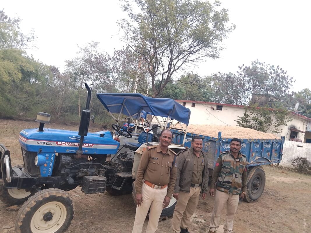 राष्ट्र आजकल/राहुल चौरसिया/जिला ब्यूरो मंडला / चौकी हिरदेनगर थाना महाराजपुर द्वारा आज दिनांक 05/01/2024 को पुलिस चौकी हिरदेनगर के सामने रोड पर वाहन चेकिंग के दौरान करीब 13 बजे एक ट्रेक्टर पावर ट्रेक कम्पनी 439 डीएस जिसमें ट्राली लगी हुई ट्रेक्टर व ट्राली का रंग नीला है जिनमें नम्बर लेख नही था। विधिवत् ट्रेक्टर ट्राली रोक कर चेक किया गया चालक से अपना नाम पता पूछने पर अपना नाम अमन कुमार भांवरे पिता अमरलाल भांवरे उम्र 21 वर्ष साकिन कौरगांव पुलिस चौकी हिरदेनगर थाना महाराजपुर जिला मण्डला का रहने वाला बताया जो ट्रेक्टर में लगी ट्राली में रेत खनिज भर कर परिवहन करते हुये पाये जाने पर चालक से वैध दस्तावेज तथा रायल्टी पेश करने कहा गया जिसने कोई दस्तावेज एवं रायल्टी पेश नहीं करने पर चालक का कृत्य धारा 379 ताहि व खान एवं खनिज अधिनियम 1957 की धारा 04/21 का दण्डनीय पाये जाने से आरोपी चालक से वाहन ट्रेक्टर एवं ट्राली रेत खनिज भरी जप्त कर, जप्त सुदा ट्रेक्टर मय ट्राली रेत खनिज भरी चौकी परिसर में सुरक्षार्थ रख कर आरोपी के विरुध्द धारा सदर का अपराध पंजीबंध्द कर विवेचना में लिया। उक्त कार्यवाही निरीक्षक जसवंत सिंह राजपुत के नेतृत्व में चौकी हिरदेनगर की टीम द्वारा की गयी जिसमें सउनि रामकृष्ण बघेल हमराह स्टाफ सउनि दुर्गा प्रसाद बिसेन, प्र.आर. कोमल बरकडे आर. देवेन्द्र रैदास सामिल रहें।