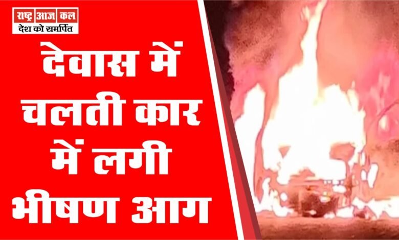 देवास में चलती कार में लगी भीषण आग ;ड्राइवर सहित तीन लोग उतरकर भागे