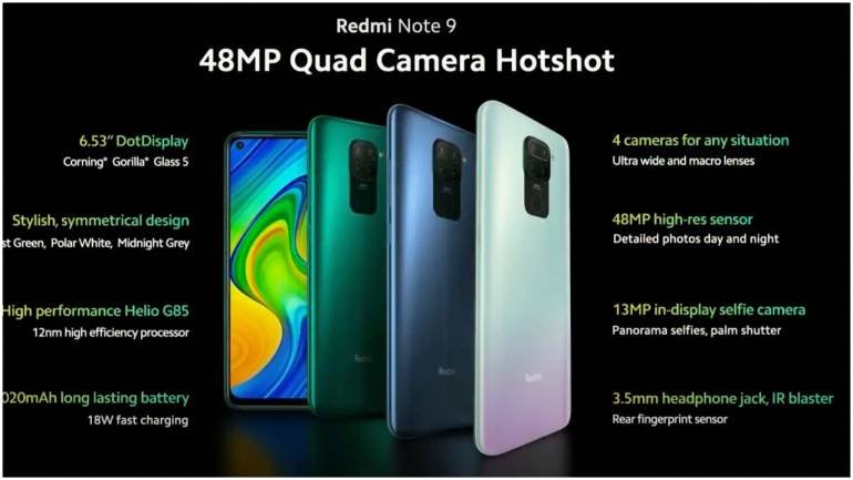 एंड्राइड 10 ओएस पर आधारित इस स्मार्टफोन को MediaTek Helio G85 चिपसेट पर पेश किया गया है। पावर बैकअप के लिए इसमें 5,020mAh की बैटरी दी गई है। Redmi Note 9 में 48MP का प्राइमरी सेंसर, 8MP का अल्ट्रा वाइड एंगल, 2MP का डेप्थ सेंसर और 2MP का मैक्रो लेंस दिया गया है। वहीं फोन का फ्रंट कैमरा 13MP का है। इसमें 6.53 इंच का फुल एचडी+ डॉट डिस्प्ले दिया गया है।