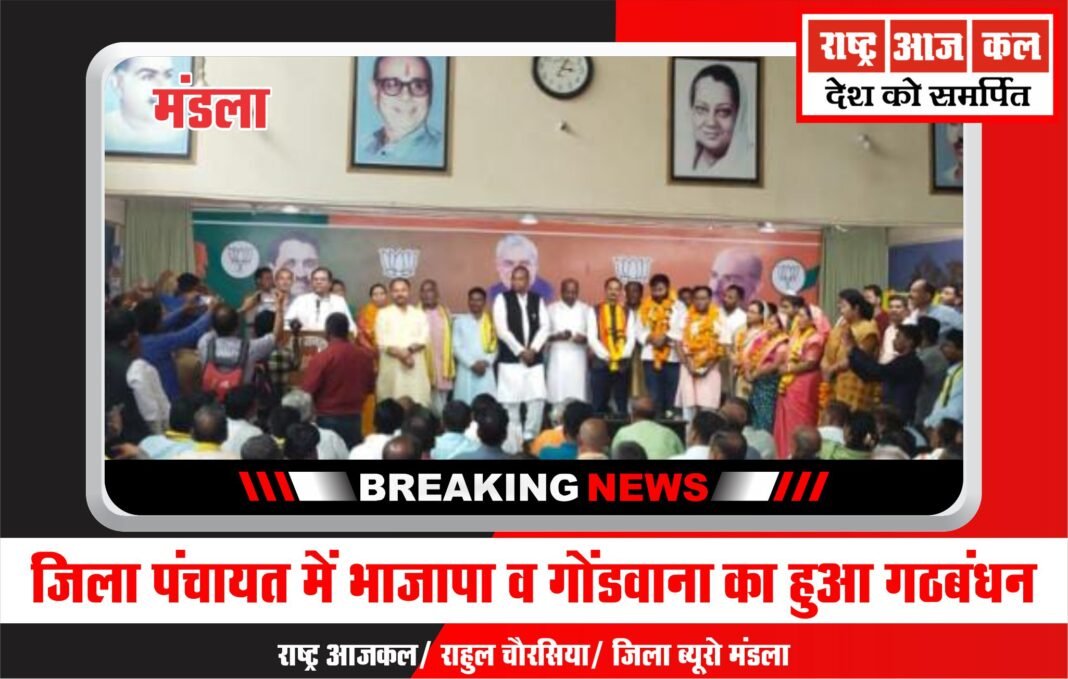 राष्ट्र आजकल/राहुल चौरसिया/ जिला ब्यूरो मंडला: मंडला जिला पंचायत की कुर्सी के लिए भाजापा ने गोंडवाना गणतंत्र पार्टी से गठबंधन कर जिला पंचायत अध्यक्ष पद पर अपना कब्जा जमा लिया है। वही गोंडवाना को ने जिला पंचायत उपाध्यक्ष की कुर्सी पर अपना कब्जा जमाया है। बतादें जिला पंचायत अध्यक्ष पद के चुनाव में भाजपा के संजय कुशराम को 9 वोट मिले वही गोंडवाना पार्टी के कमलेश तेकाम को भी 9 वोट जिसके आधार पर जिला निर्वाचन अधिकारी ने संजय कुशराम को जिला पंचायत अध्यक्ष और कमलेश तेकाम को जिला पंचायत उपाध्यक्ष पद का प्रमाणपत्र देकर विजय घोषित किया है।