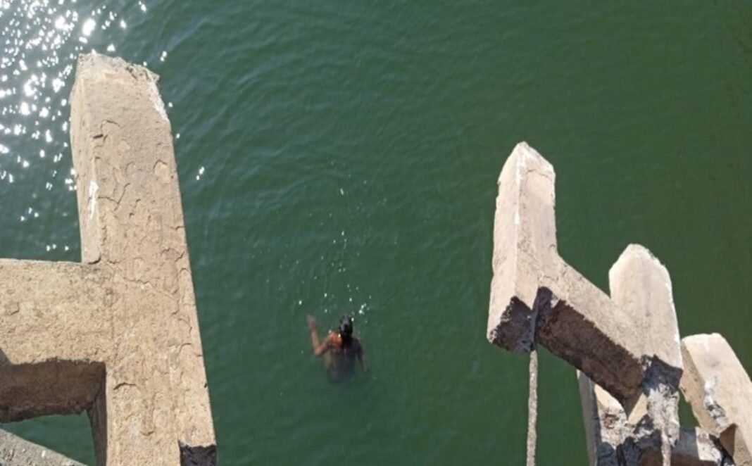 राष्ट्र आजकल प्रतिनिधि, मंडला। मंडला में मंगलवार को मंडला-जबलपुर राष्ट्रीय राजमार्ग स्थित कालपी क्षेत्र से मंडला की ओर आ रही कार बबैहा पुल के पास अनियंत्रित हो गई और पुल की क्षतिग्रस्त रेलिंग को तोड़ते हुए नदी में जा समाई। कर में सवार चार लोगों में से दो लोगों को बचाया जा चुका है। शेष दो लोगों को एवं कार को ढूंढा जा रहा है। मंडला पुलिस से मिली जानकारी के अनुसार, मंगलवार की दोपहर कालपी से मंडला आ रही एक इनोवा कार मंडला के पास बबेहा पुल में अनियंत्रित होकर पुल की रेलिंग तोड़ते हुए नदी में जा गिरी जिसमें चार लोग सवार थे। कार में सवार बलवेंद्र मसराम एवं नारद तुमरांची अपनी जान बचाते हुए वाहन के कांच को तोड़कर पानी से बाहर निकल गए लेकिन अभी भी उसमें दो युवक फंसे हैं। नदी में डूबी कार में फंसे युवकों के नाम सियाराम कोरचे एवं धनेश मरावी बताए गए हैं। जो अभी गाड़ी में फंसे हुए पानी के अंदर ही डूबे हुए हैं। मौके पर 100 डॉयल मौजूद है एवं पुलिस प्रशासन का अमला भी मौजूद है। नदी में डूबी हुई कार को रेस्क्यू करने के प्रयास शुरू कर दिए गए हैं।