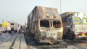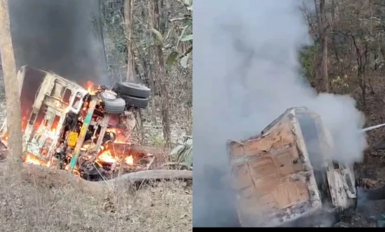 पलटते ही धूं-धूं कर जला ट्रक