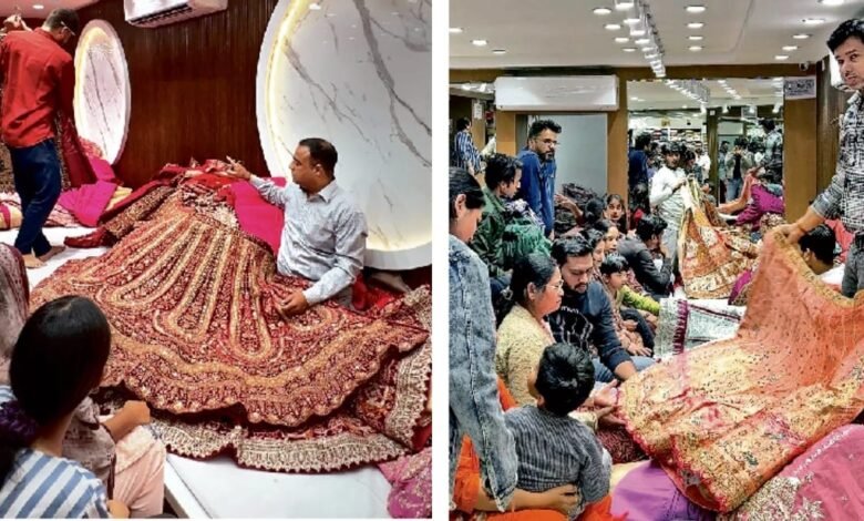 शादी का सीजन शुरू होते ही कपड़े के कारोबार में रौनक लौट आई है। दुकानों पर दुल्हन के लिए विभिन्न प्रकार के लहंगे उपलब्ध हैं। कपड़ा व्यापारियों के अनुसार बाजार में वेलवेट, सिल्क और प्योर सिल्क लहंगे की मांग ज्यादा है। पेस्टल शेड्स, मिरर वर्क और हैवी एंब्रायडरी वाले लहंगे दुल्हनों की पहली पसंद हैं। फ्यूजन स्टाइल साड़ी और ट्रेंडी लहंगे की सेल काफी है। शादी समारोह के लिए युवतियां फैंसी, जिमीचू, नेट और प्लेन बार्डर विद वर्क वाले लहंगे खरीद रही हैं। वहीं दुल्हन की सहेलियों में बनारसी सिल्क, विचित्रा, एचओ और लिनन की साड़ियों की मांग भी बढ़ी है।