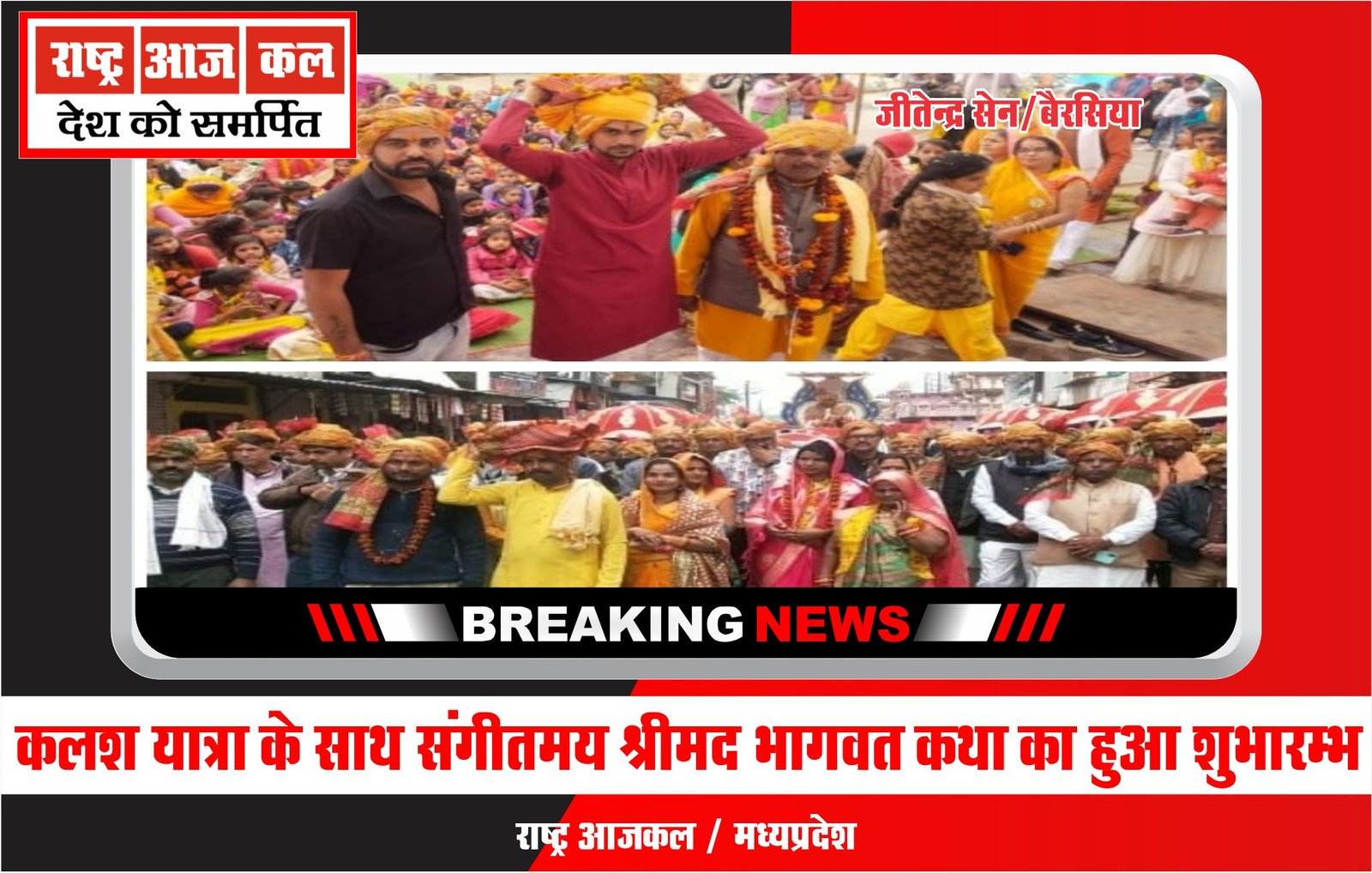 माता मंदिर रेंज चौराह से रविवार को गाजे बाजे के साथ कलश यात्रा प्रारम्भ होकर नगर के प्रभुख मार्गो से होती हुई कथा स्थल वीर सावरकर मंच रामलीला मैदान बाल बिहार पर सम्पन्न हुई।