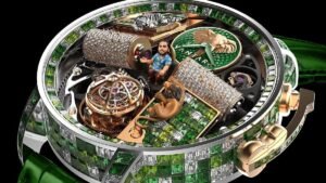 यह घड़ी जैकब एंड कंपनी के मशहूर ‘ओपेरा’ कलेक्शन का हिस्सा है। इसमें एक म्यूजिक बॉक्स मैकेनिज्म है, जो बटन दबाते ही धुन बजाता है।
