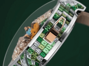 घड़ी को ‘जंगल’ का लुक देने के लिए इसमें ग्रीन कैमलाज मोटिफ का इस्तेमाल किया गया है। इस घड़ी को सजाने के लिए कुल 397 रत्नों का उपयोग किया गया है, जिनका कुल वजन 21.98 कैरेट है।